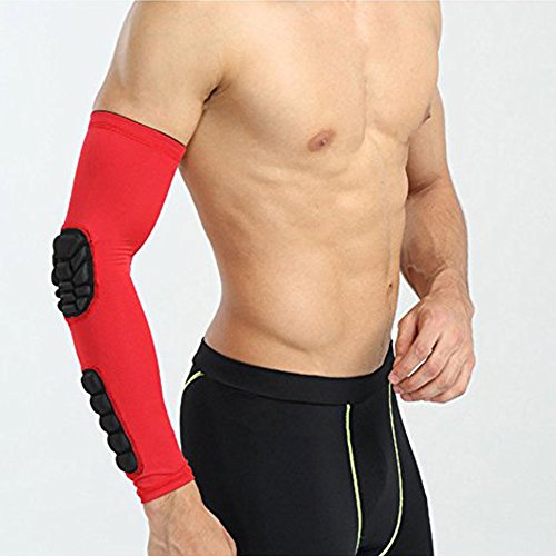 FB Sports, gomitiere a compressione con manica lunga, sportive, unisex, protettive, con imbottitura, per basket, calcio, pallavolo, baseball, softball, ciclismo, running, pesca, tennis