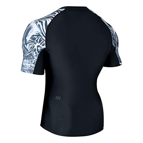 HUGE SPORTS Rash Guard da Uomo Magliette da Bagno a Maniche Corte Compressione Rashguard Protezione Solare (Nero+B, XL)