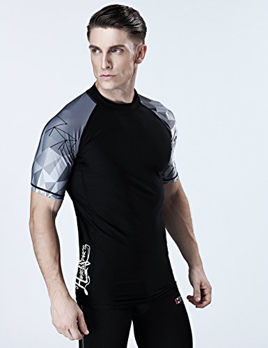 HUGE SPORTS Rash Guard Maniche Corte, Uomo - Maglia Protettiva in Speciale Tessuto Elastico - Protezione Solare UV (UPF) 50+