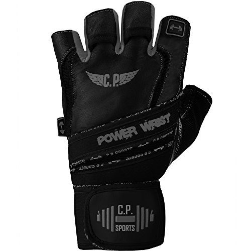 C.P. Sports Power Wrist guanti da palestra uomo e donna per sollevamento pesi I antiscivolo e imbottiti I sicurezza e stabilità con il supporto da polso I chiusura in velcro I taglia XL, nero