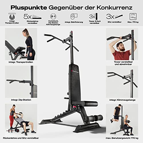 Sportstech - BRT600 Palestra Multifunzione Panca Palestra, 6 in 1 Panca Piana Attrezzi Palestra, Panca Regolabile Palestra per l'allenamento di tutto il corpo Leg Curls, Pull-Up e Chin-Up