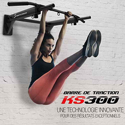Sportstech KS300 KS300 - Barra di trazione con 3 Anelli per TRX, Punching-Ball, imbracature con Manici Antiscivolo, Esercizi Pull-up Materiale di Fissaggio Incluso Max. 300 kg