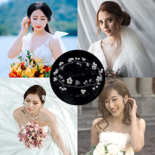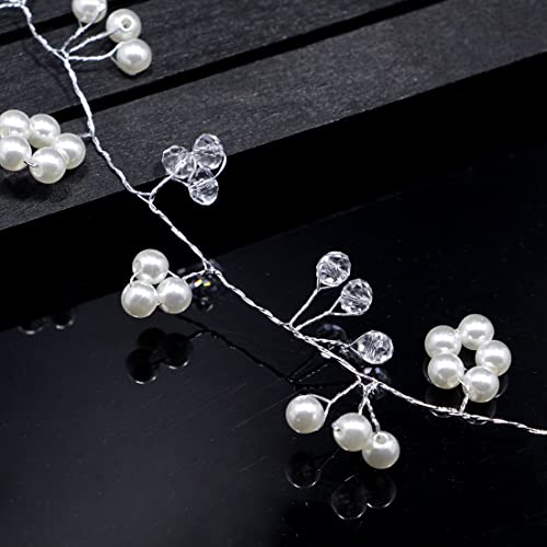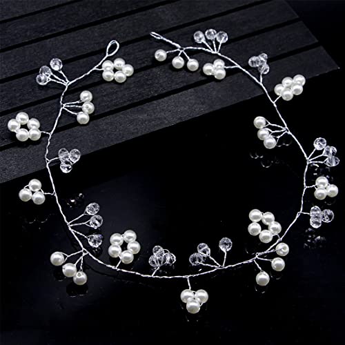 Materiale di alta qualità - La fascia per capelli da sposa è realizzata in filo di lega e tempestata di perle artificiali e strass che è luminosa e sfarzosa.