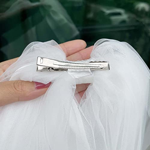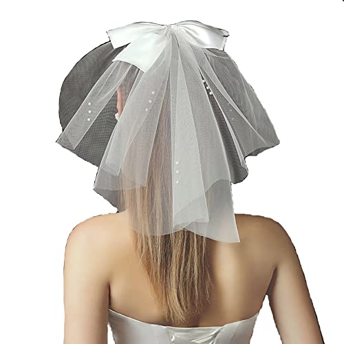 Velo da sposa con fiocco da sposa Carufin Veli di perle corti bianchi con clip Veli da sposa in tulle Accessori per capelli per donne e ragazze