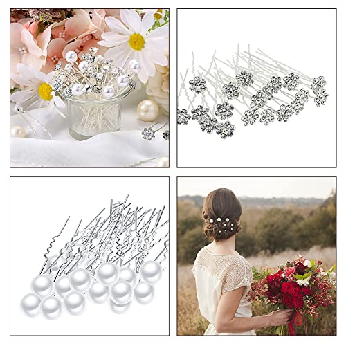 Sposa Forcine Capelli, Accessori Capelli Sposa, 20 pezzi Perle Mollette di U, Accessori per Capelli Perle con Strass, Perle Fiori Strass Capelli per la Decorazione di Nozze, Copricapo da Sposa