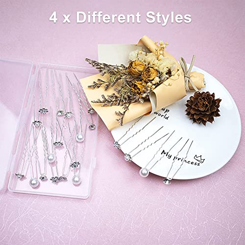 Il pacchetto include: 20 x fermagli per capelli da sposa, con 4 stili diversi (fiore di perla * 5, perla * 5, strass * 5, fiore di cristallo * 5), la dimensione di ogni stile è di circa 1 * 7 cm.