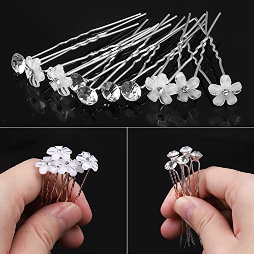 Sposa Forcine Capelli, Einkirsche 25 Pcs Forcine per Capelli per Matrimonio di Perla di Fiori, Forcine a Forma Strass di U, Cristallo Fermagli per Capelli Sposa, Nuziale Copricapo per Donne e Ragazz