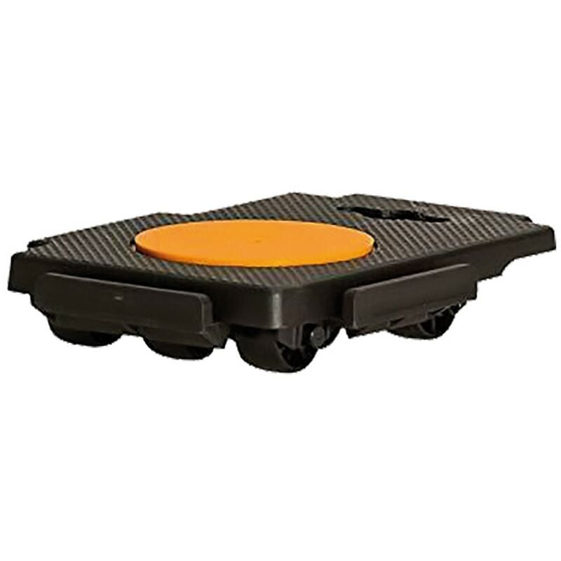 In plastica robusta. portata 100 kg, 8 ruote in polipropilene.cm. 14 x 10,5 x h.2,5