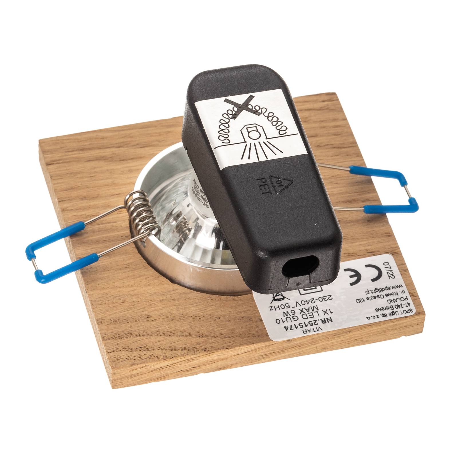 Set di tre apparecchi da incasso Vitar per soffitto L'apparecchio da incasso Vitar è un apparecchio da incasso che non solo soddisfa pienamente gli aspetti illuminotecnici, ma serve anche a scopi decorativi. Il set contiene tre plafoniere a incasso, ognuna delle quali comprende una sorgente luminosa a LED con base GU10. Grazie alla cornice decorativa in legno di quercia oliata, Vitar può essere utilizzato per creare accenti altamente estetici sul soffitto. Il faretto da incasso completa in modo ideale gli spazi abitativi come elemento naturale.