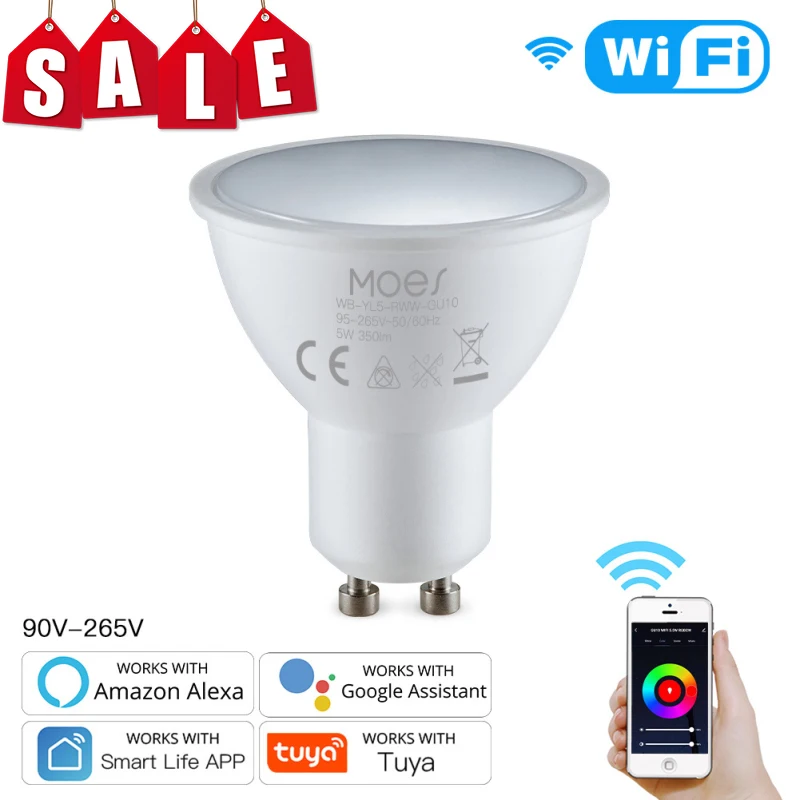 GU10 Spotlight Tuya WiFi Smart Light Bulb 5w RGB+CW Smart Bulb App Remote Control Dimmable RGB Light Lamp For Alexa Google Home