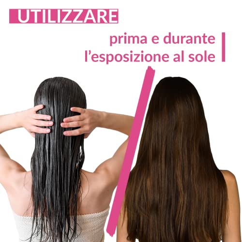 Grazie agli speciali filtri UV, limita la degradazione del colore dovuta al sole, al cloro e alla salsedine, lasciando i capelli morbidi e brillanti. Prima e durante l'esposizione al sole, vaporizzare su tutta la capigliatura, ripetendo l'applicazione più volte