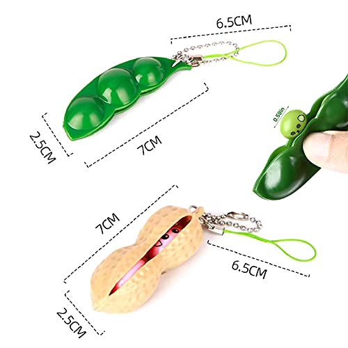 NZHK 6 PCS Spremere Edamame Giocattolo Fidget, Edamame Peanut Cute Keychain Squeeze-A-Bean Squeeze Bean Pea Toys Portachiavi per telefoni Tasti Zaino Regalo