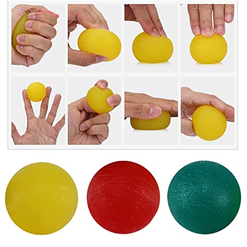 【Tre livelli di resistenza】 RESISTENZA VARIABILE: ogni set di 3 palline per terapia manuale include un GIALLO (resistenza morbida/lieve), ROSSO (resistenza media/moderata) e VERDE (resistenza ferma/alta).