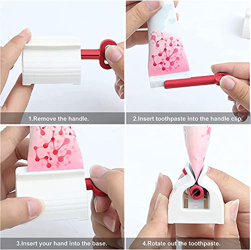 Facile da Usare: Questo spremi tubetti dentifricio con manico girevole, basta inserire il dentifricio nel rullo e ruotare la maniglia, senza più forza, comodo e facile da premere, può essere utilizzato facilmente da bambini e anziani.