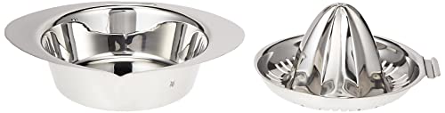 WMF Spremiagrumi gourmet con contenitore, Ø 9 cm, spremiagrumi manuale per arance, limoni, lime, acciaio inossidabile Cromargan opaco, lavabile in lavastoviglie