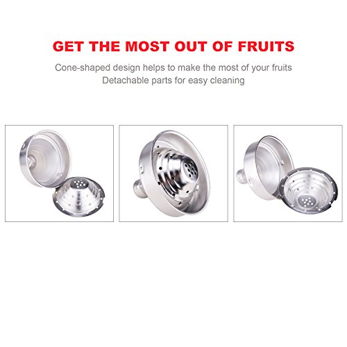 SOLIDO E CONVENIENTE: Costruzione solida in ghisa con filtro in acciaio inossidabile 304 per il settore alimentare. La leva fornisce una procedura efficiente e rapida. Per ottenere i migliori risultati, tagliare la frutta a metà e fare delle fessure per renderlo più flessibile.
