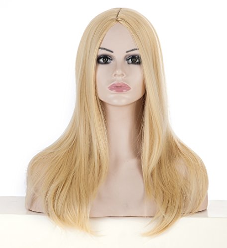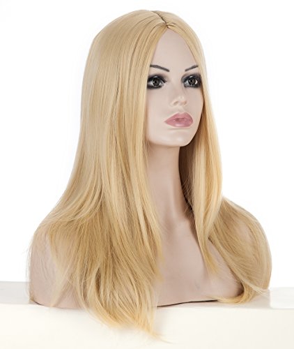 Spretty Brillante bionda Lunga Parrucca Diritta delle Donne con la fine del Rullo di Costume Cosplay della Parte Centrale