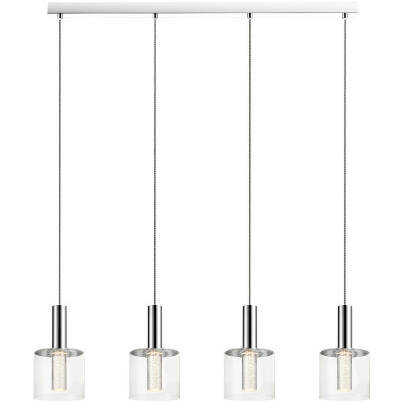 Spring Lighting Soffitto a sospensione a LED contemporaneo a 4 luci cilindriche cromato, vetro 3000K | Finitura: Cromata | Materiale: vetro, metallo | Grado di protezione IP: IP20 | Altezza minima: 22,5 cm | Altezza massima: 157 cm | Diametro paralume: 12 cm | Ombra Altezza: 10 cm | Tipo di lampada: LED integrato | N. di lampade: 4 | Lampadina inclusa: Sì - Integrata | Dimmerabile: No | Peso: 3,1 kg | Potenza (max): 5 W