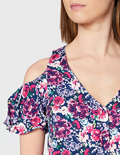 Blusa con spalle scoperte con scollo a V, con dettaglio volant sulla manica e stampa.