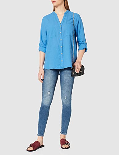 Springfield Camicetta Collo MAO Lino Cotone Biologico. Camicia, Blu Medio, 38 Donna
