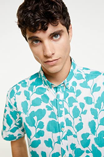 Springfield Camicia Slub Fiori, Stampa Verde, L Uomo