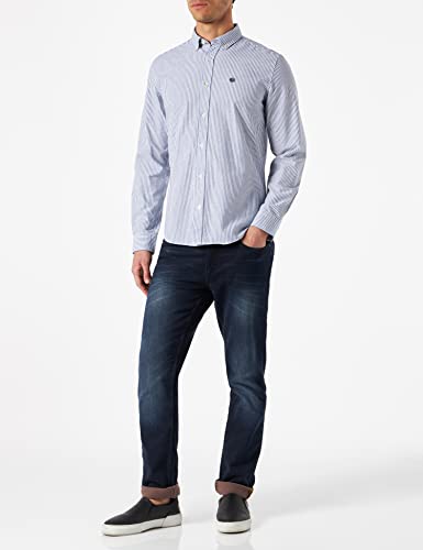 Springfield Camicia a Maniche Lunghe Pinpoint a Righe, Blu Medio, XXL Uomo