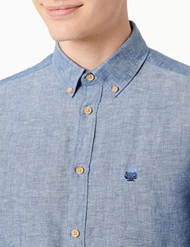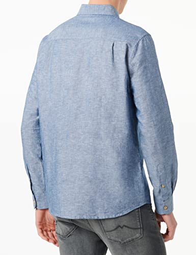 Springfield Camisa Manga Larga Lino Camicia, Blu Medio, S Uomo