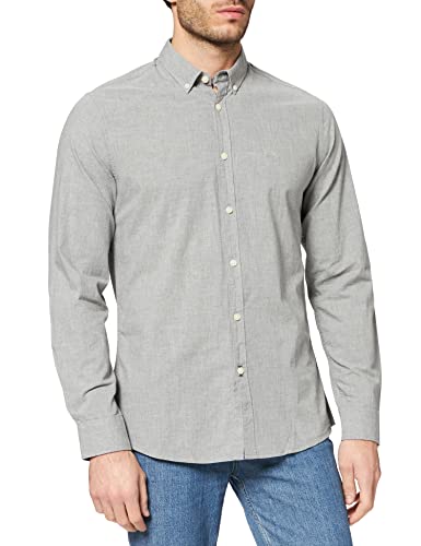 Springfield Camisa Xmas Solid Melange Camicia, Grigio Medio, XS Uomo