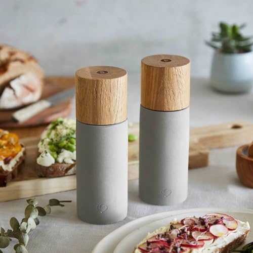 SPRINGLANE Set di 2 macinini per sale e pepe in quercia e cemento, macina spezie, macina peperoncino, macina ceramica regolabile, senza riempimento, design scandinavo - grigio