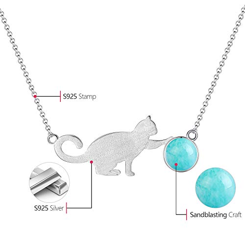 Springlight Regalo Donna collana donna in argento sterling S925 Collana con Ciondolo a Forma di Gatto Che Gioca Palle con collane Lunghezza Catena 43cm, Gioielli fatti a mano da donna regalo mamma.