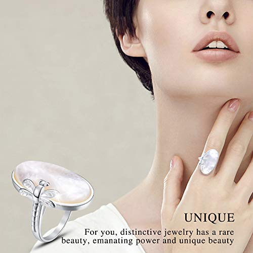 ♥ Design unico ♥ "Anello conchiglia naturale con anello aperto animale libellula", Indossando questo regalo donna anelli donna in argento sterling S925, realizzato a mano e unico nel suo genere, le donne mostreranno un temperamento unico ed elegante.