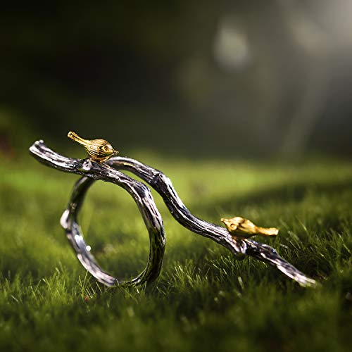 ♥ Design unico ♥ "Uccelli Sul Ramo Anelli regolabile", Indossando questo regalo donna anelli donna in argento sterling S925, realizzato a mano e unico nel suo genere, le donne mostreranno un temperamento unico ed elegante.