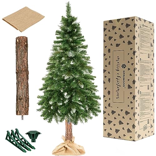 SPRINGOS Albero di Natale 160 cm pino domestico con tronco naturale supporto neve artificiale