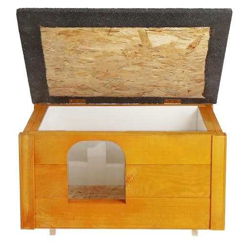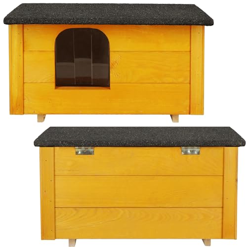 PARAMETRI: Casetta per gatti in legno, colore: marrone miele, dimensioni: 39 x 54 x 30 cm (L x L x A), spessore delle pareti circa 4,5 cm, pareti rinforzate con polistirolo di 4 cm di spessore, adatta anche per uso interno