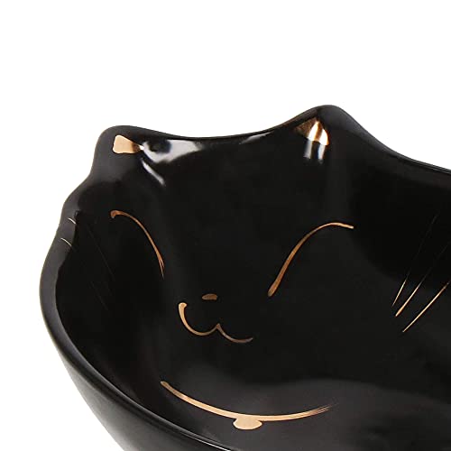SPRINGOS Ciotola in ceramica con orecchie di gatto, cibo fresco, cibo secco per acqua dolce (nero)