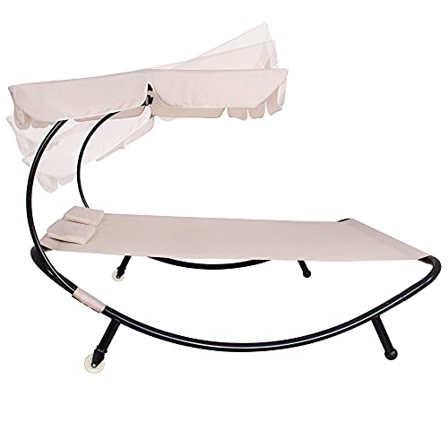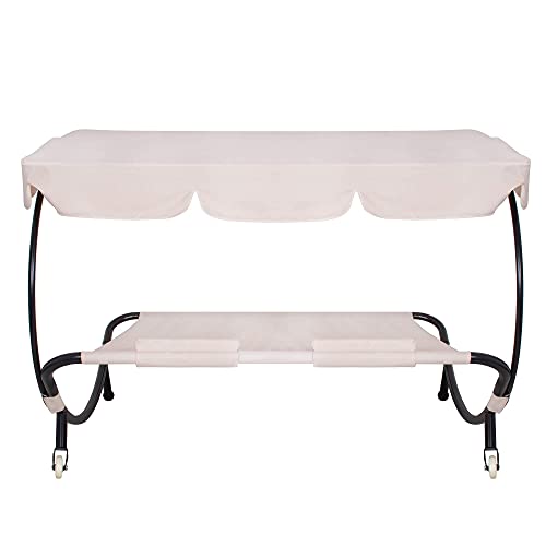 SPRINGOS - Lettino a sdraio con tettuccio parasole, doppio lettino (lunghezza x larghezza x altezza): 175 x 200 x 120 cm con 2 poggiatesta, portata massima di 240 kg (crema)