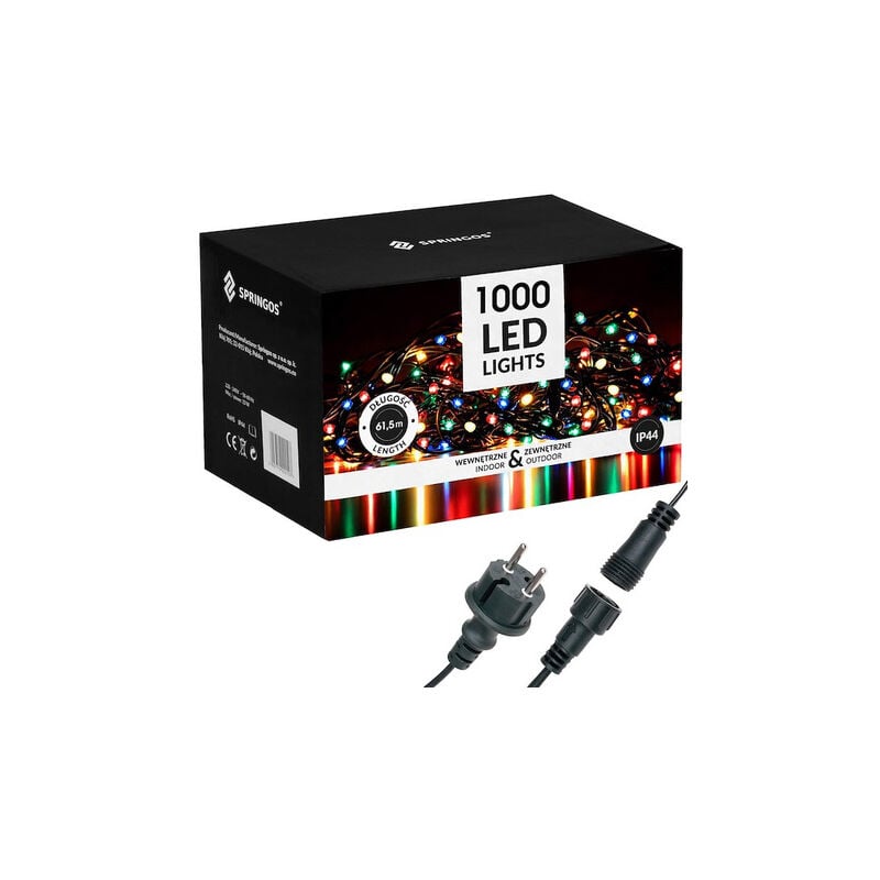 Una casa splendidamente illuminata che sembra uscita da una favola? È possibile con le potenti luci natalizie della marca Springos! Se desideri creare una decorazione natalizia unica e stupire costantemente i tuoi familiari, procurati un'illuminazione professionale. Scegliendo le nostre luci, otterrai 1000 diodi LED a risparmio energetico multicolore. I diodi sono impermeabili e le luci sono collocate su cavi di rame durevoli. Potrai decorare con essi i corrimani del balcone e della terrazza, illuminare le recinzioni e dare luce agli alberi sempre verdi. Sogni decorazioni luminose non solo nel giardino, ma anche in ufficio o in vetrine dei negozi? Sei nel posto giusto! Il nostro prodotto offerto ha una lunghezza di circa 60 metri e una classe di protezione IP44, il che significa che può essere utilizzato sia internamente che esternamente. La connessione dei cavi è ben pensata, in modo che il bruciarsi di uno dei diodi non provochi l'estinzione di tutta la parte illuminata. Non esitare