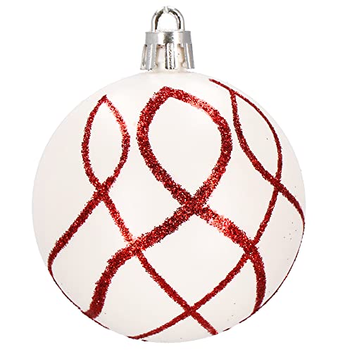 SPRINGOS Set di palline per albero di Natale in plastica, 30 pezzi, diametro 6 cm, colore rosso e bianco, decorazione per Natale, feste, matrimoni