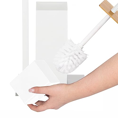 SPRINGOS - Porta scopino per WC con supporto per carta igienica integrato, quadrato, autoportante, 79 cm, in metallo, colore grigio