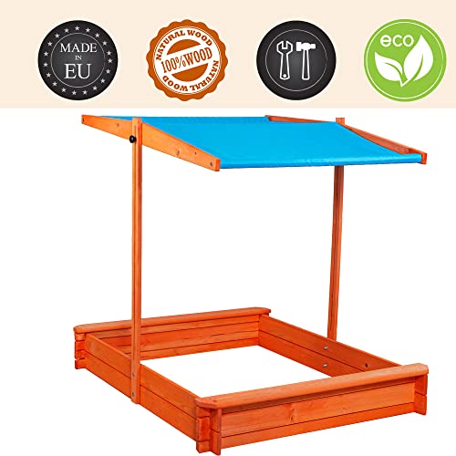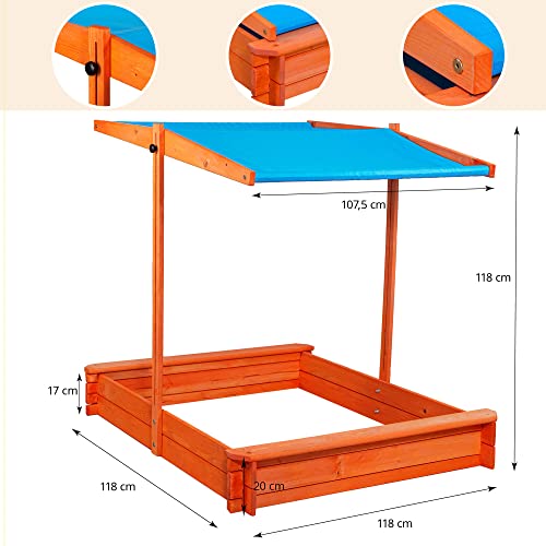 SPRINGOS Sabbiera in legno per bambini con tetto regolabile in altezza sabbiera impregnata 118 x 118 cm