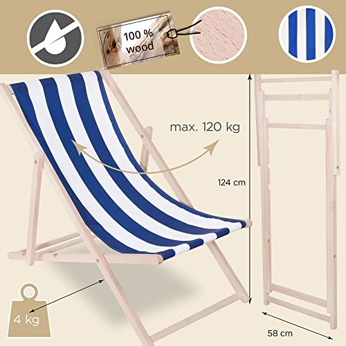 SPRINGOS sdraio pieghevole in legno massiccio con tessuto, per giardino e piccolo balcone sistema di sicurezza 3 posizioni