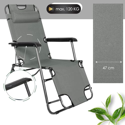 SPRINGOS Sdraio con poggiatesta, braccioli, max. 120 kg, sdraio pieghevole, sdraio relax, sdraio da giardino, struttura in metallo, sdraio estiva