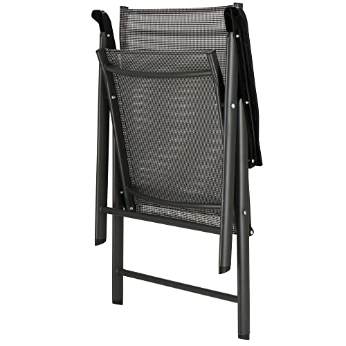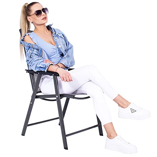 SPRINGOS- Sedia pieghevole da giardino in alluminio, per balcone, patio, con braccioli in textilene (grigia - nera)
