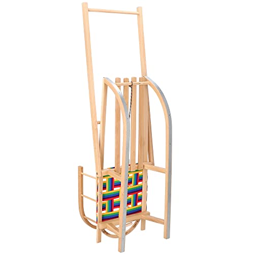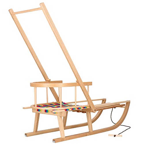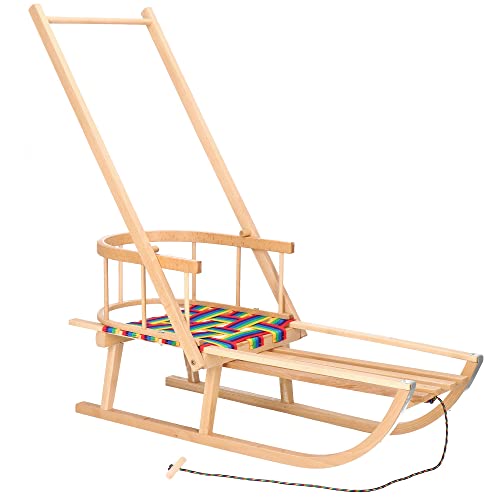 SPRINGOS Slitta per bambini verniciata con barra di spinta 89 cm schienale e corda di trazione Slitta in legno di faggio con guide in metallo