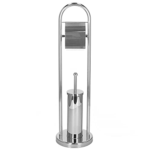 SPRINGOS Supporto per scopino WC con porta carta igienica integrato in metallo, dimensioni 80 x 22 x 22 cm, accessorio per WC (acciaio inox 80 x 22 x 22 cm)