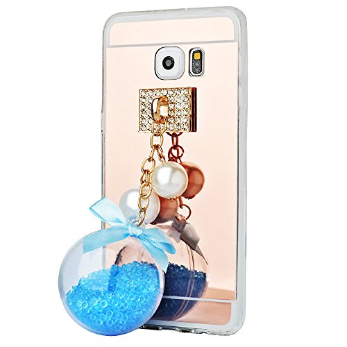 Spritech (TM Fahion Custodia Cellulare, Oro Slippy Specchio Morbida Copertura Smartphone con Un Bellissimo Effetto sabbiato Ciondolo Accessary, Blue, Samsung Galaxy S6