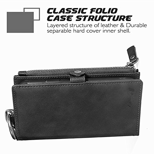 Spritech Ultimate - Custodia a portafoglio per iPhone 6S, in pelle, a strati con gancio e cerniera e scomparti per carte di credito, chiusura magnetica staccabile per Apple iPhone 6/6s
