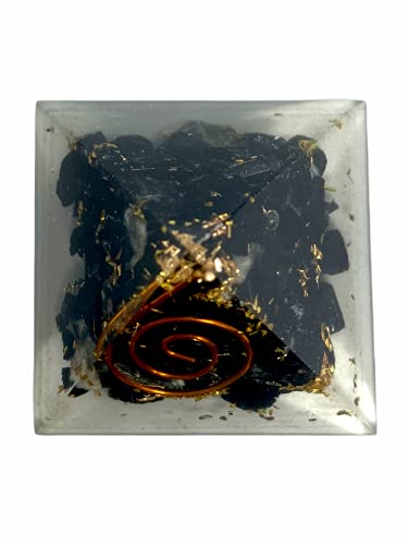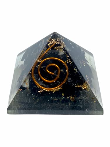 Spritual Elementz Reiki Charged Chakra Healing Black Tourmaline Orgonata Piramide (1'Inch) con cristallo trasparente pietra preziosa rame metallo (pietra per protezione da tutte le energie negative)