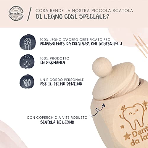 Spruchreif I Scatola per denti da latte in legno con coperchio a vite e incisione I Scatola per denti da latte per bambini I Scatola Porta Dentini di Latte bambino e bambina I Topolino dentini