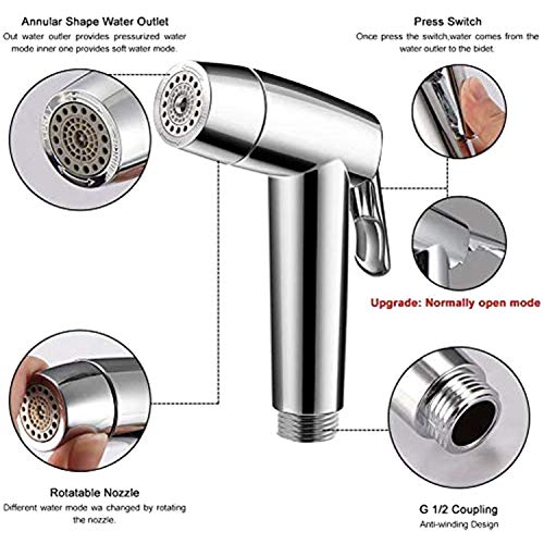 Controllo della pressione dell'acqua: lo spruzzatore per bidet manuale fornisce un ottimo controllo della pressione dell'acqua, è comodo e senza frustrazioni senza problemi di spruzzatore, un delicato bidet spray da utilizzare come bidet portatile e un getto spray per le operazioni di pulizia.